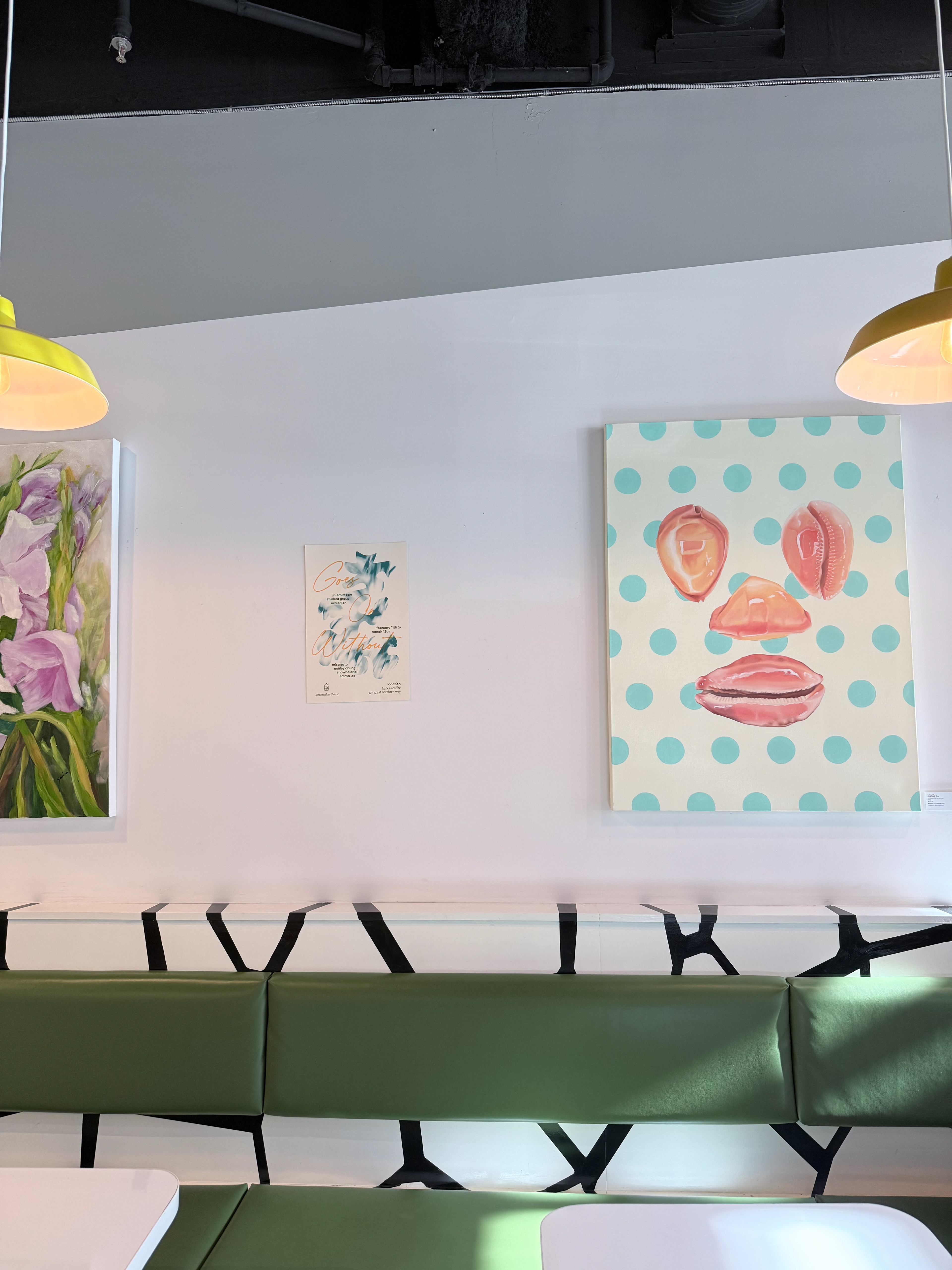 Installation view of Kafka's coffee Roasting and Bakery with "Gaze Space" painting by Ashley Chung
