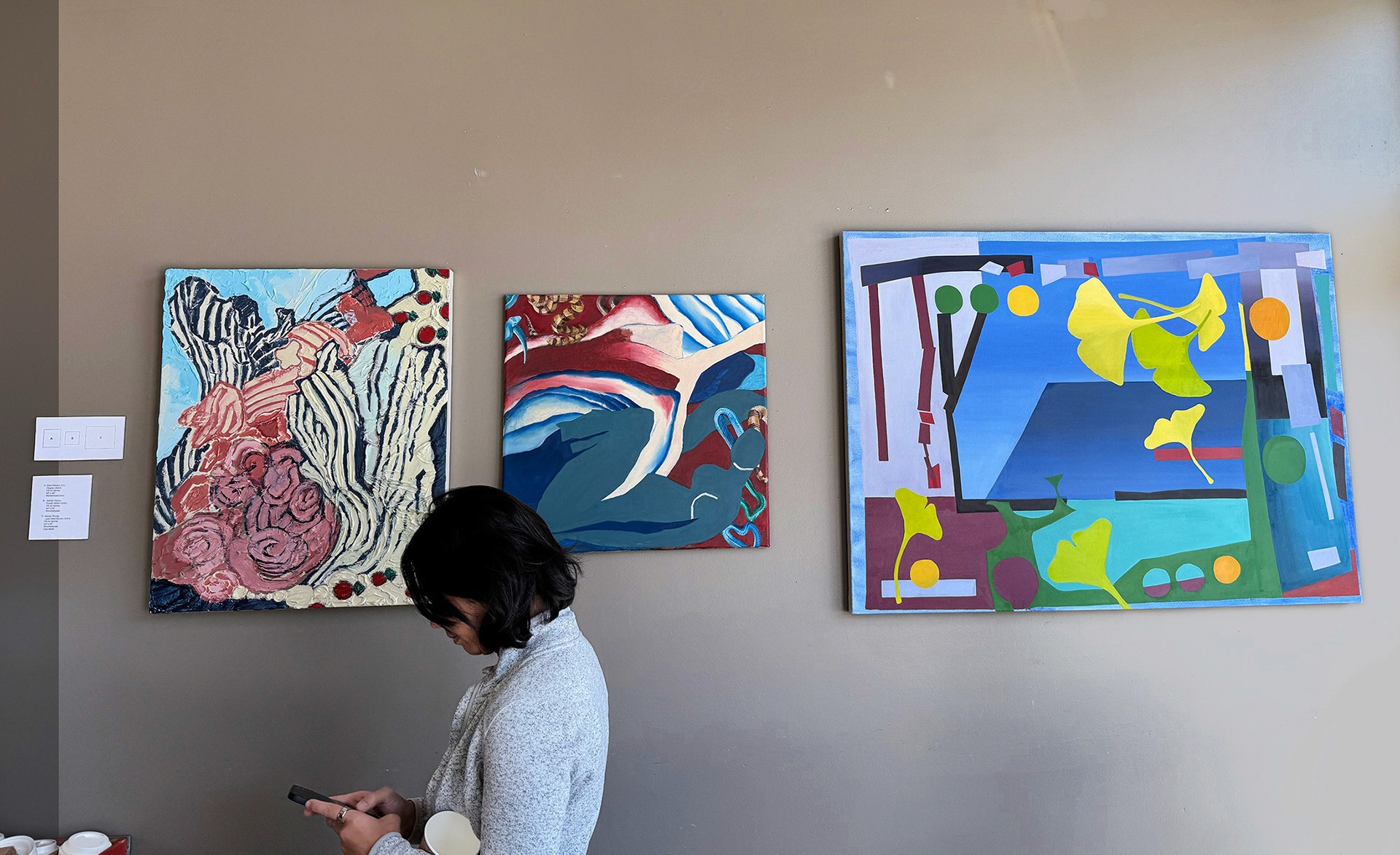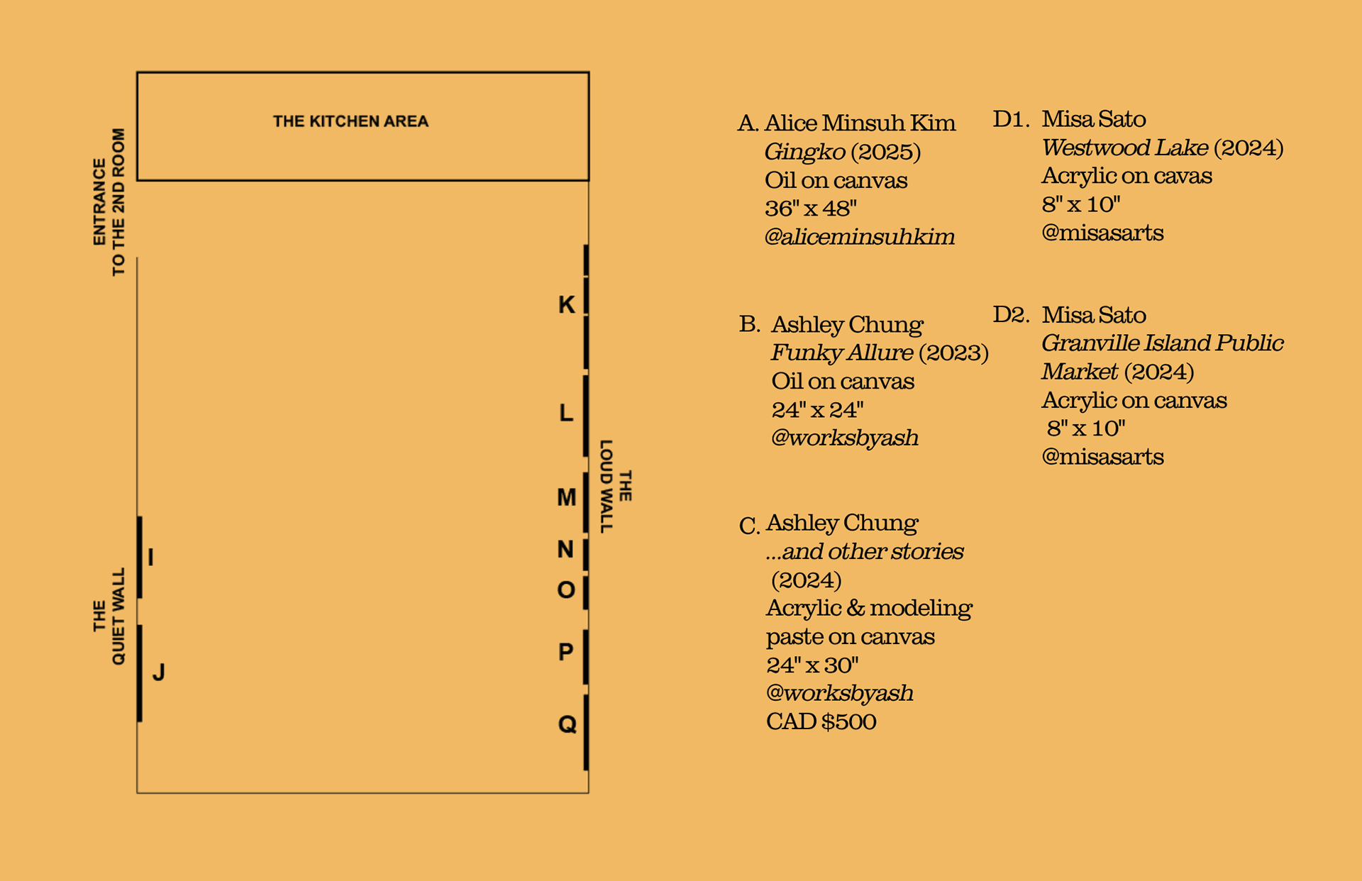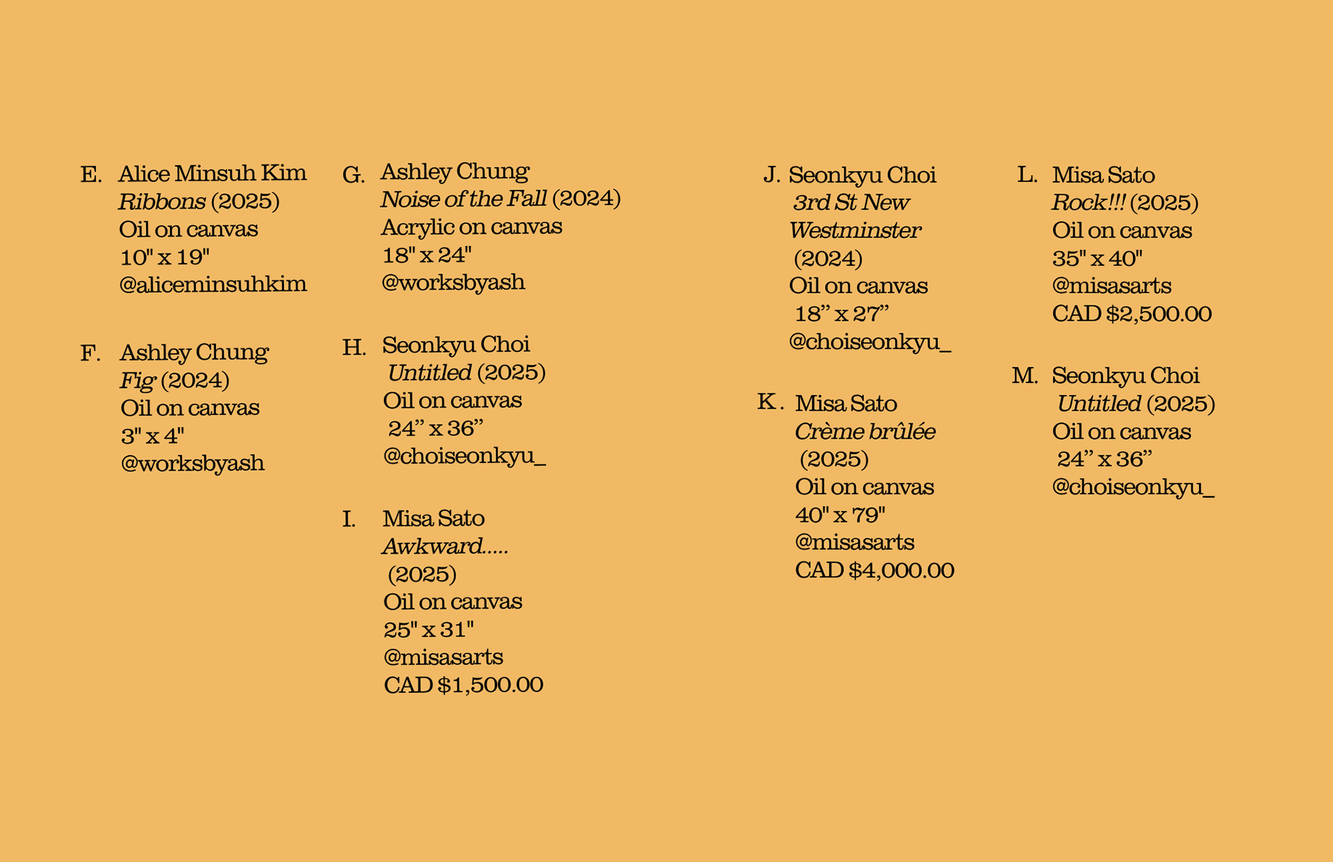 "Goes on without" is a research based group exhibition curated by Tami Han. It presents a selection of four artists from Emily Carr University of Art and Design whose paintings open a dialogue about the Kafkaesque, the concept of absurdities and hopelessness living in this Society. I curated two different groups of paintings to convey the comparisons and contrast to that idea of Kafkaesque.