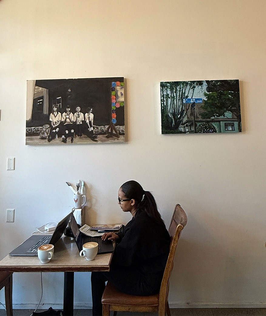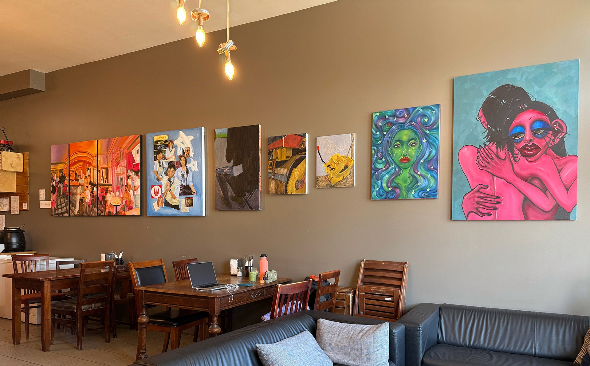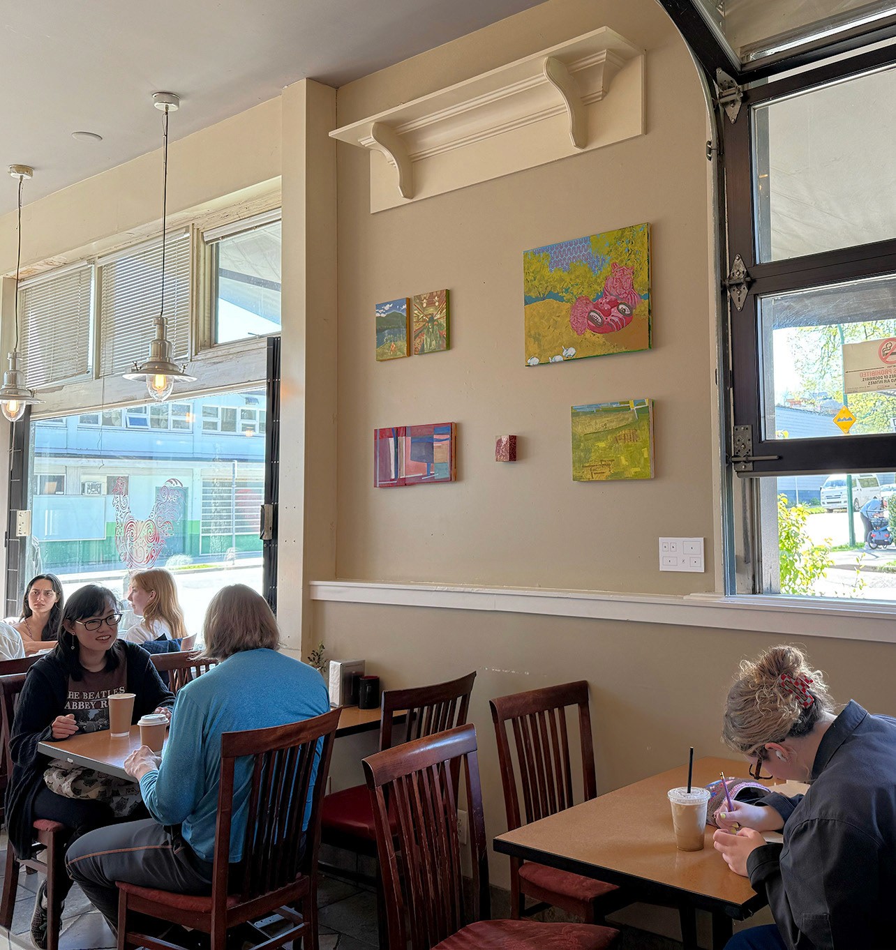 "Goes on without" is a research based group exhibition curated by Tami Han. It presents a selection of four artists from Emily Carr University of Art and Design whose paintings open a dialogue about the Kafkaesque, the concept of absurdities and hopelessness living in this Society. I curated two different groups of paintings to convey the comparisons and contrast to that idea of Kafkaesque.