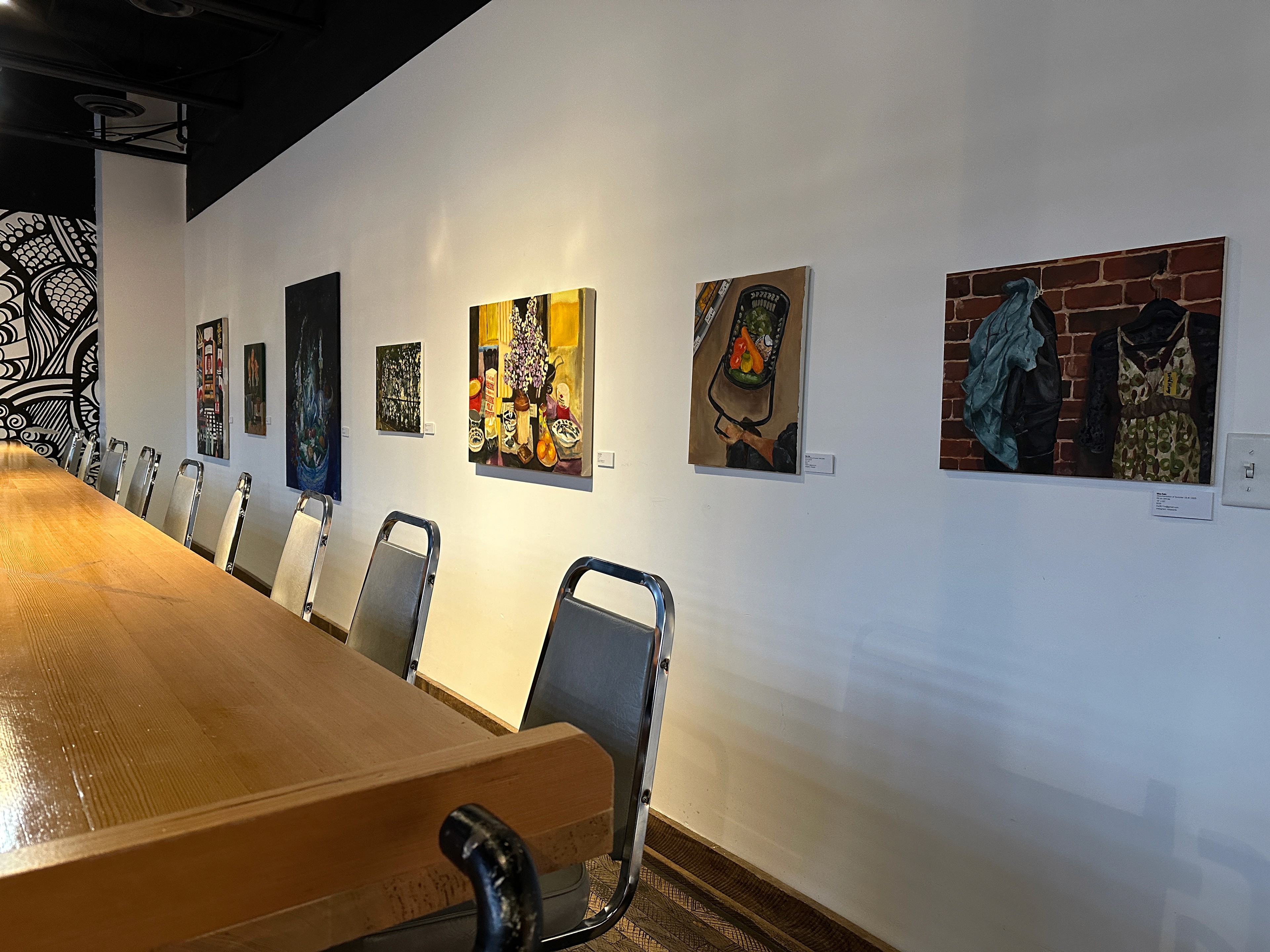 "Goes on without" is a research based group exhibition curated by Tami Han. It presents a selection of four artists from Emily Carr University of Art and Design whose paintings open a dialogue about the Kafkaesque, the concept of absurdities and hopelessness living in this Society. I curated two different groups of paintings to convey the comparisons and contrast to that idea of Kafkaesque.